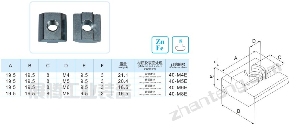 滑塊螺母只能從鋁型材兩頭置入T型槽內(nèi),因此裝配效率不高,但它具有最優(yōu)良的連接強(qiáng)度和可靠性。