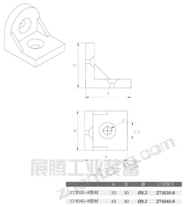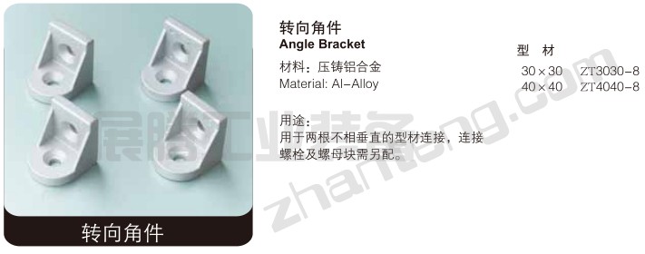 轉(zhuǎn)向角件:用于2支不相垂直的鋁型材連接,可旋轉(zhuǎn)到任意角度。 上圖為轉(zhuǎn)向角件示意圖